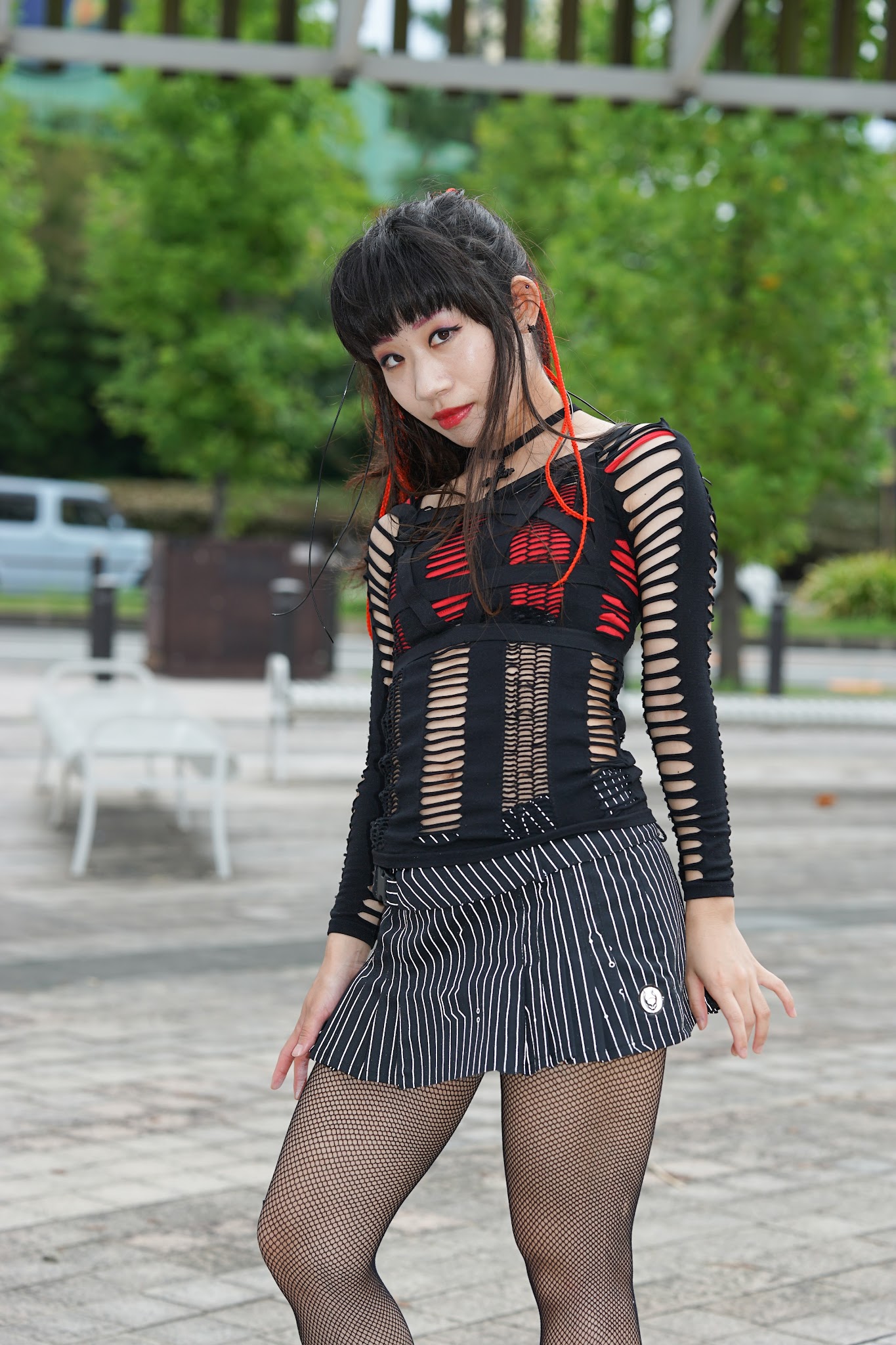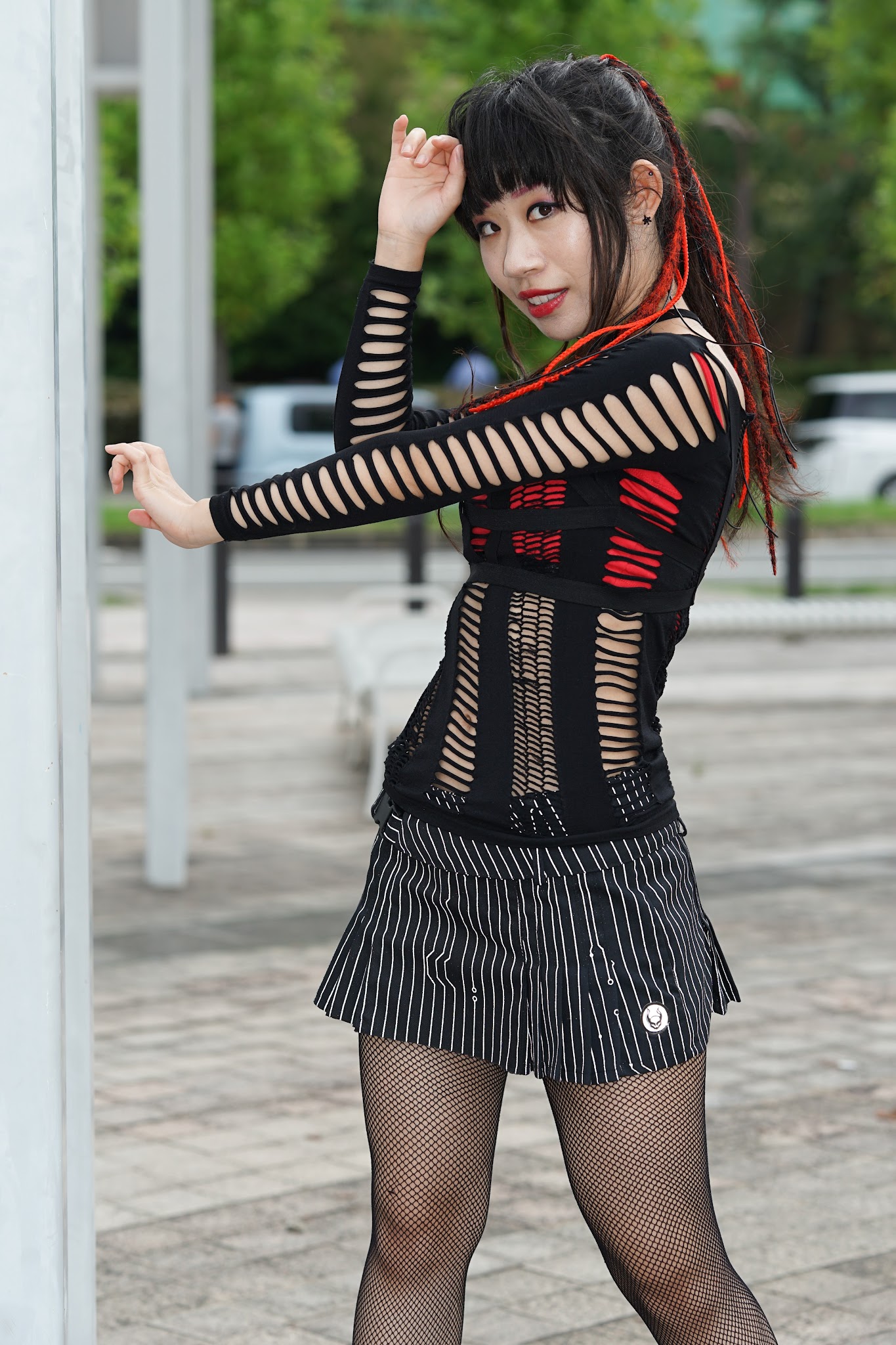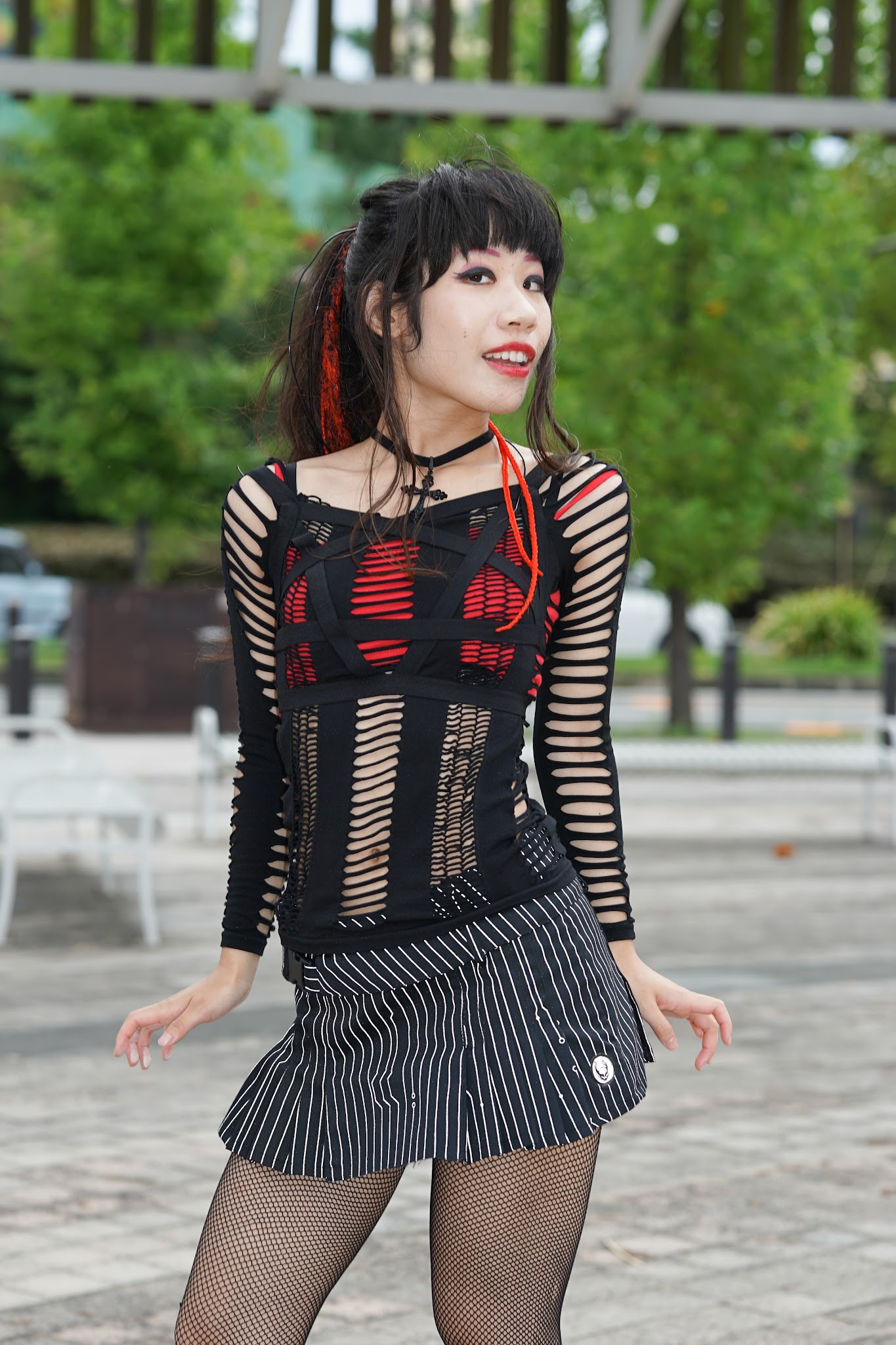 スカートの縞模様は、ストロボがあたると光る染料らしく、ピカッと光っております。